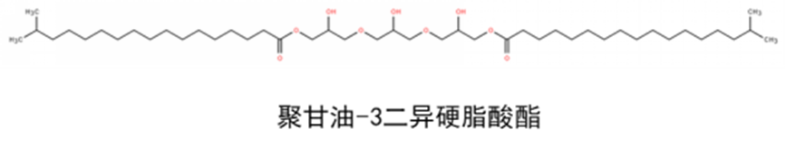聚甘油-3二异硬脂酸酯是由三聚甘油与异硬脂酸通过酯化形成,同时具备亲水、亲油基,在化妆品中具有多种作用。